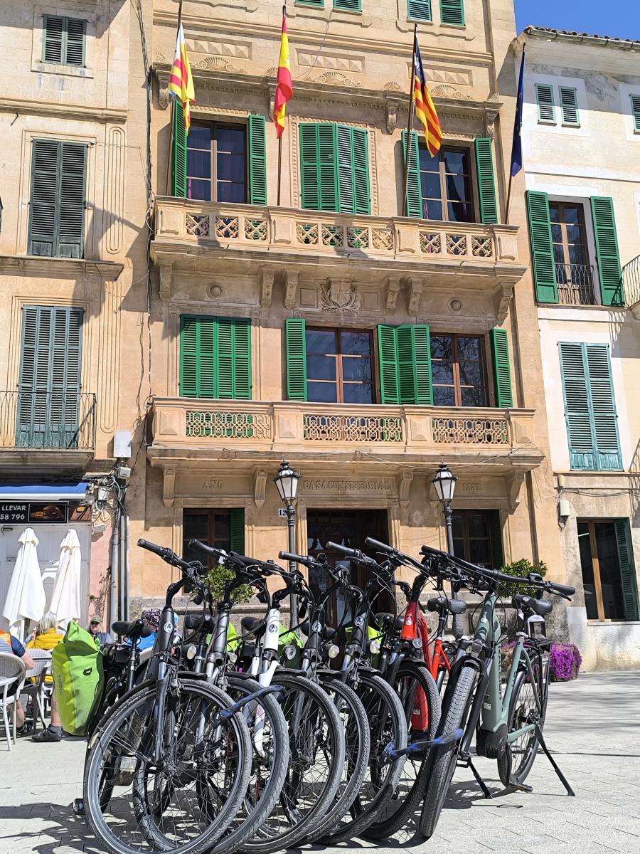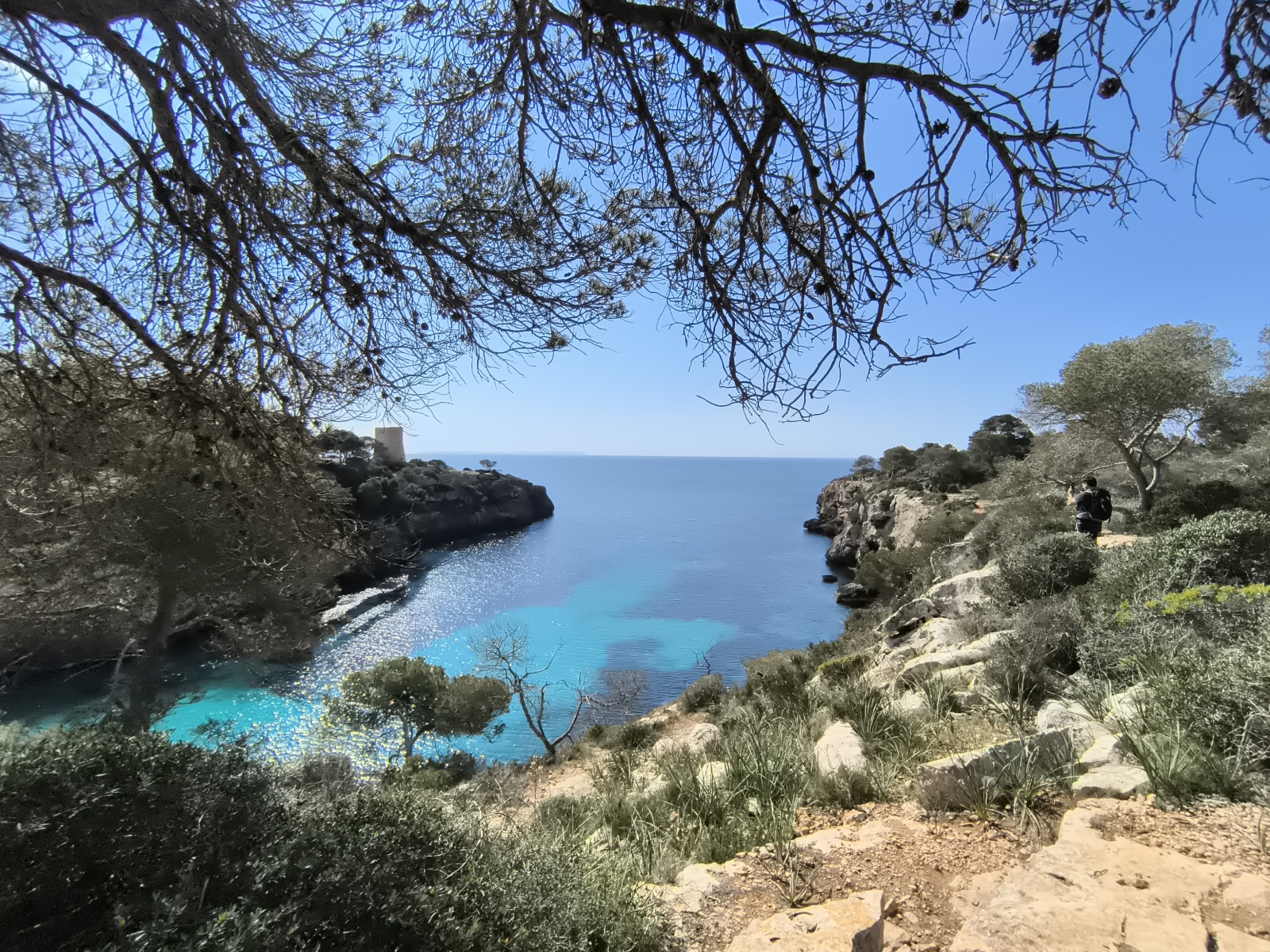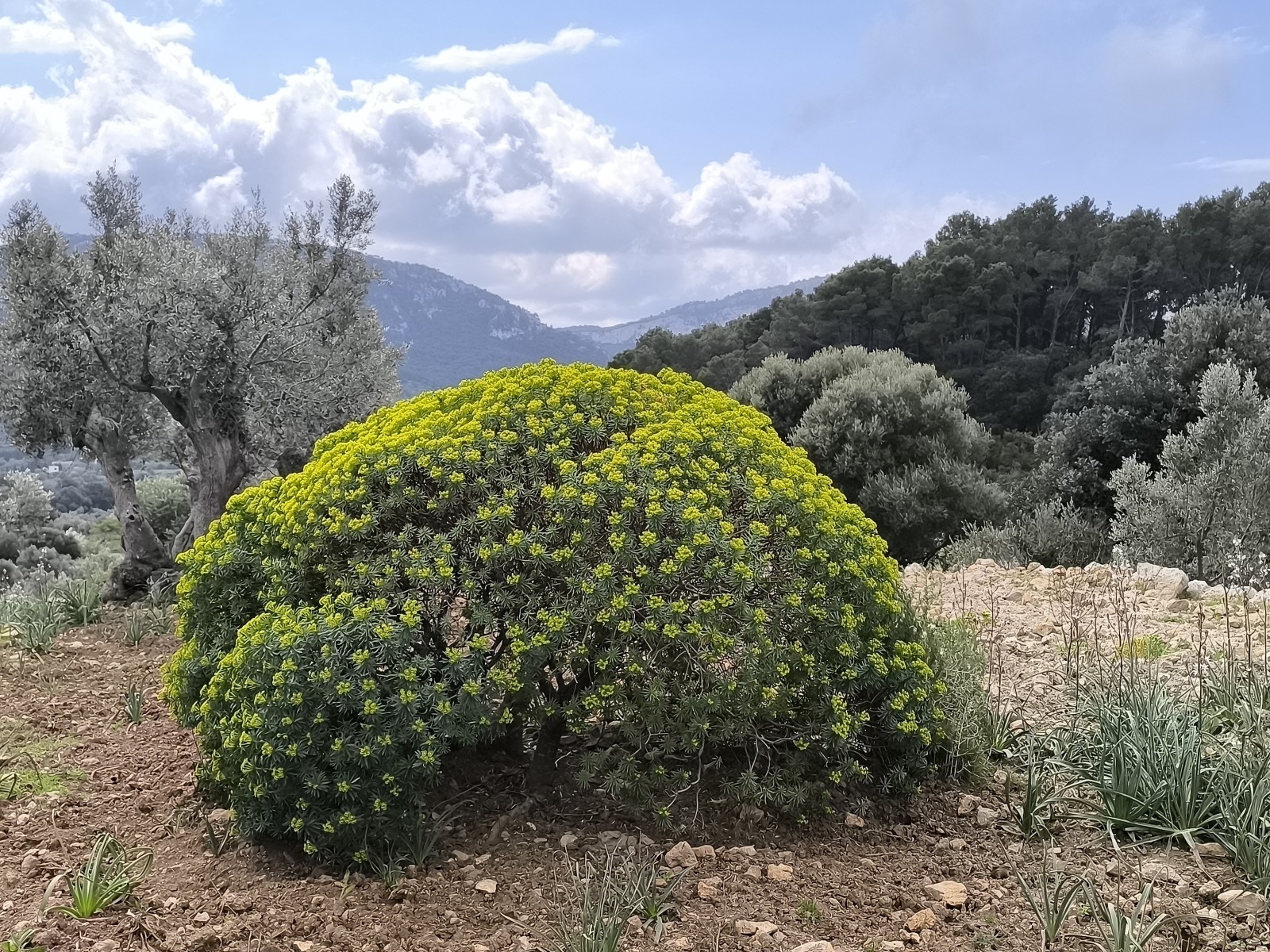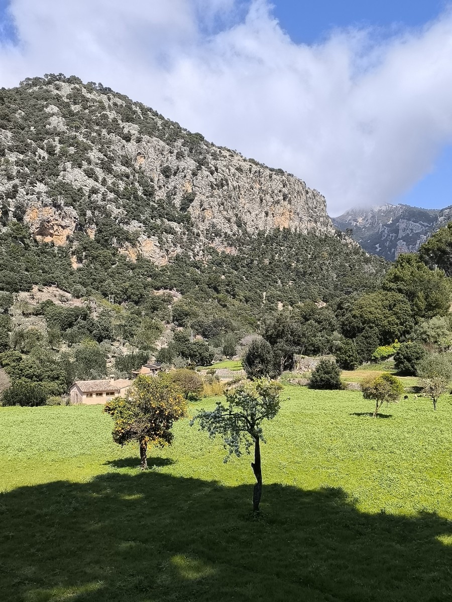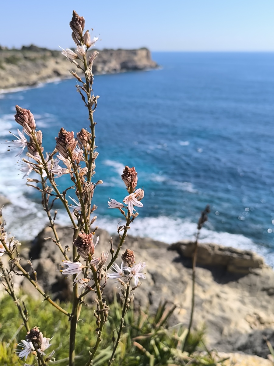 Die folgenden Tage liefen in einem gleichmäßigen Rhythmus ab. Früh gab es einen Ingwer-Cocktail, danach eine halbe Stunde Yoga unter Palmen, eingeleitet durch die fünf Tibeter. Anschließend bekam jeder einen Smoothie in den Rucksack, und wir brachen zu unterschiedlichen Touren auf: zur Bucht Cala Pi, auf eine Radtour nach Llucmajor oder zu einem Kloster im Landesinneren, zur Steilküste vor Valldemossa beispielsweise – Die Landschaft war eindrucksvoll, besonders weil sie Ende März in frischem Grün stand. Die Mandelblüte war bereits vorbei. Am Wegesrand blühte es überall.